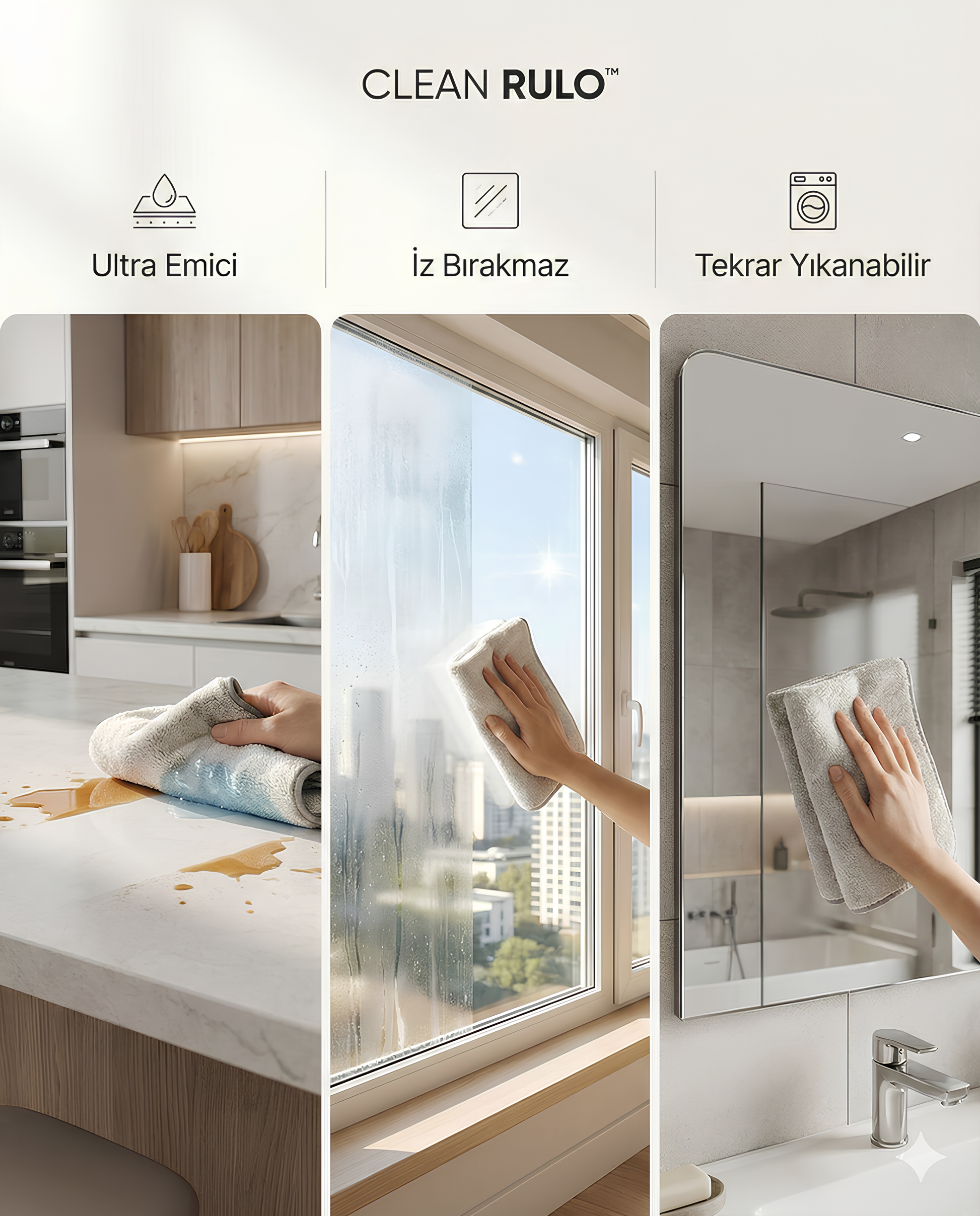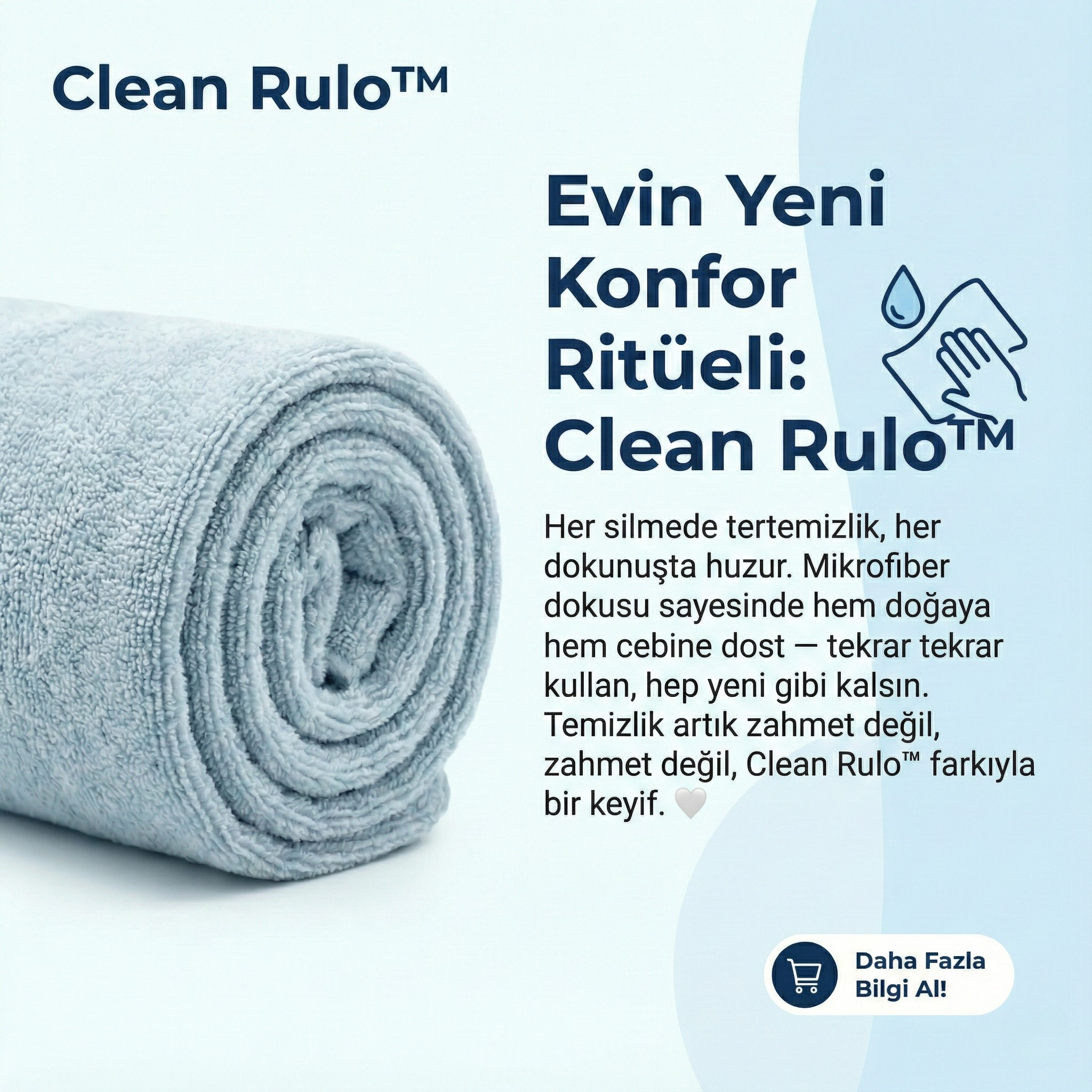 Kağıt Havlu Devri Kapandı: Clean Rulo™ ile TanışınTemizlikte kuralları yeniden yazıyoruz. Sıradan kağıt havluların aksine, Clean Rulo™ koparılır, kullanılır, yıkanır ve defalarca tekrar kullanılır.Özel dokusu sayesinde tek yaprakla tüm mutfağı pırıl pırıl yaparken, leke ve iz bırakmaz. Hem cebinizi koruyan hem de doğaya saygı duyan bu akıllı rulo, evinizin yeni süper kahramanı olmaya aday.Zahmetsiz temizlik, sürdürülebilir konfor.